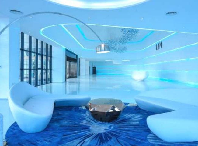 宁波·劳仕总部大楼,设计师别出心裁,以白色为主题的设计主题,是环氧磨石在商业领域的一大尝试。白色的整体空间加上蓝色的灯光效果,给人以视觉上一种极大地冲击。该项目受到各界的好评,吸引不少人参观考察。